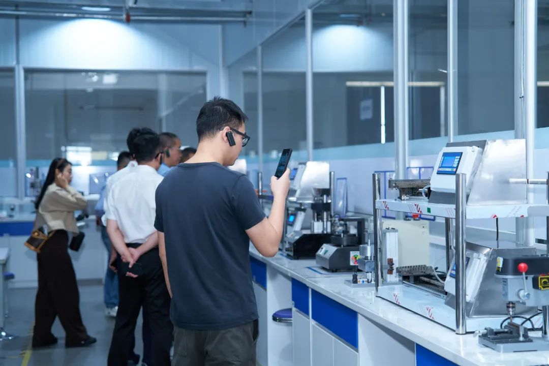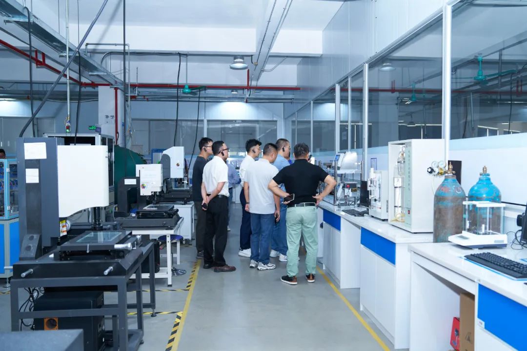 百得胜家居董事长张健先生一行首先参观了库博产品体验厅。通过Unihopper库博陈飞峰总监热情且专业的讲解,来访团队加深了对库博全品类产品的了解,充分体验到库博产品在卫浴、厨房、卧室等不同空间场景的实际应用,来宾们对Unihopper库博多元化的产品矩阵以及精良的工艺、品质赞赏有加。在参观工厂环节,Unihopper库博集团营销中心总经理邢望先生陪同百得胜张健董事长及高管团队,参观了库博集团全新的超12万平方米智能化库博工业园和CNAS认证国家级实验室。邢总讲到:“库博工厂引进行业先进技术,实行精益生产管理,全线投入自动化生产线,自动化程度达到80%以上,大大领先于国内同行。”Unihopper库博集团生营销中心总经理邢望先生(右一)