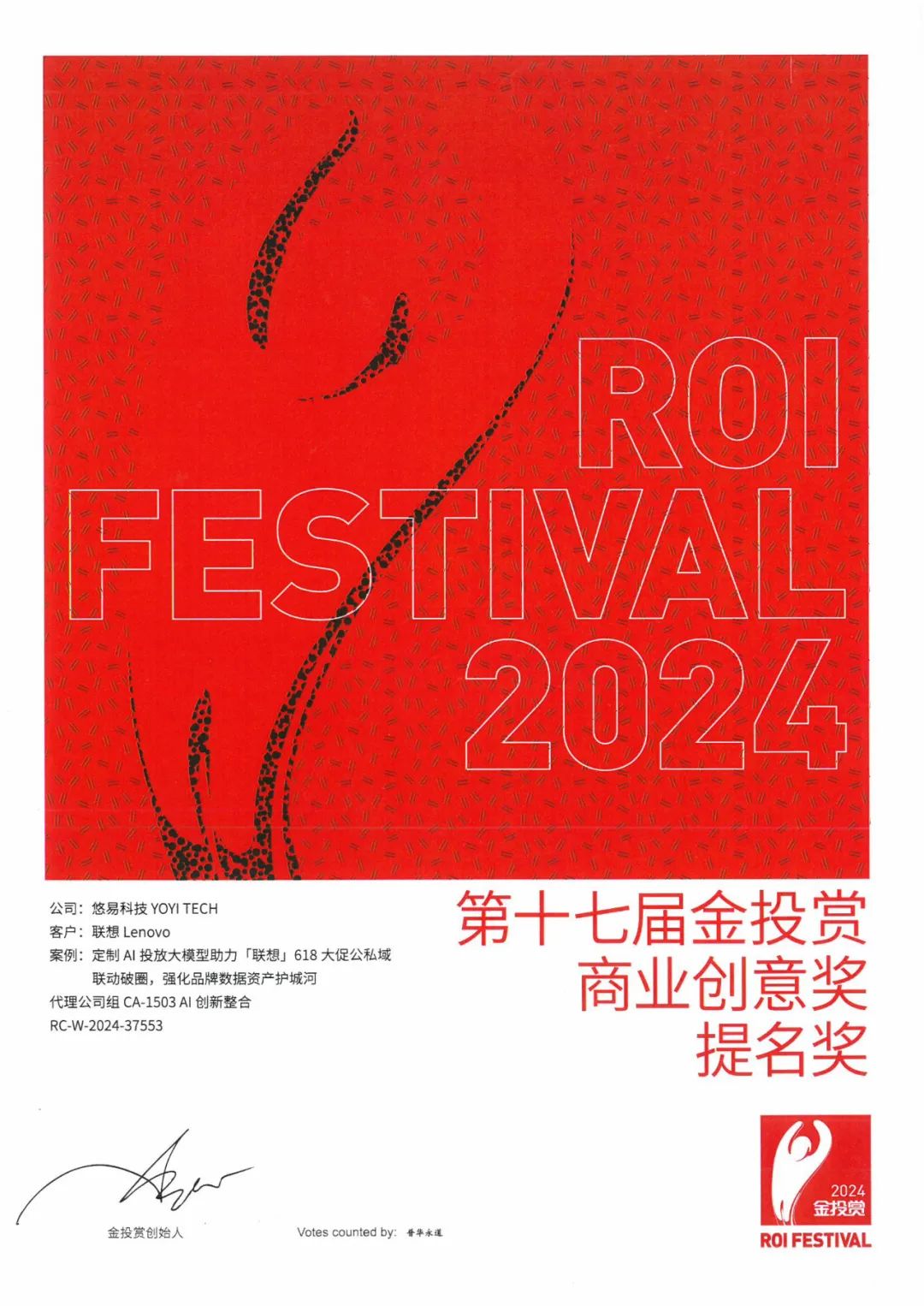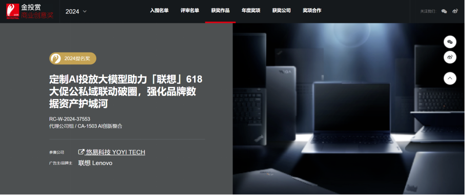 再添殊荣 | 悠易科技携手联想消费荣获金投赏AI创新整合赛道奖项