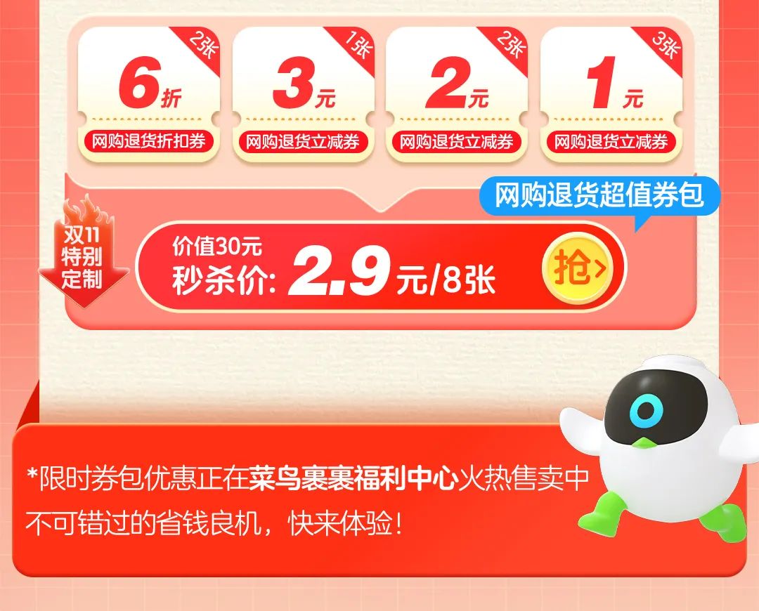 最后一波双11福利来咯,购尽兴,退安心~