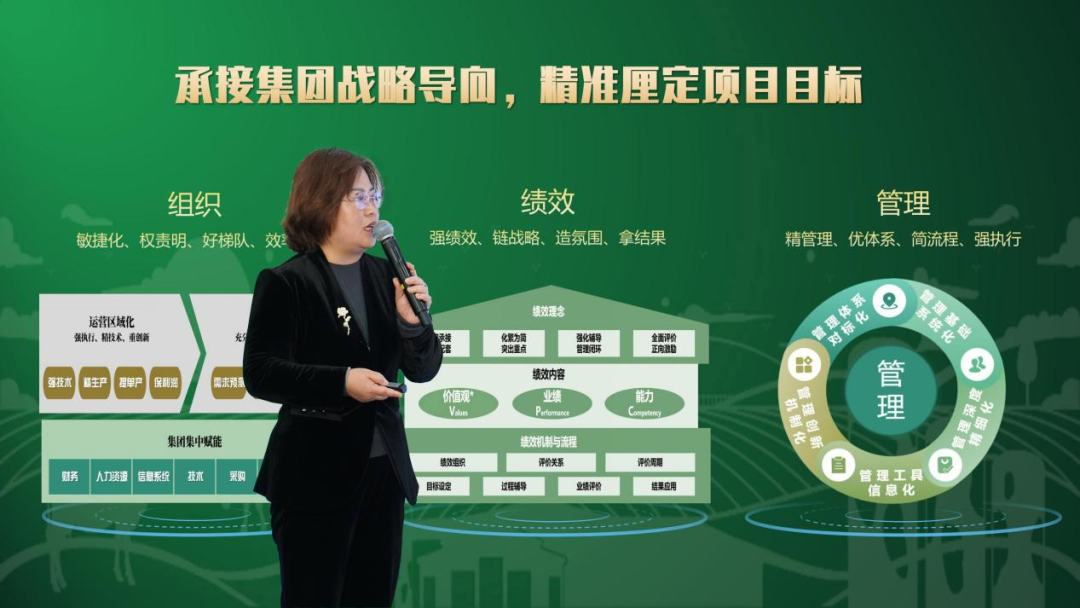 集团副总裁&人力行政负责人袁丽从承接集团战略导向的深远意义出发,精准厘定“组织绩效管理做标杆”的宏伟目标,通过优化组织结构、精进人才梯队建设、推进双优绩效体系及荣耀驱动体系、构建卓越运营管理体系,推动集团持续高质量效能提升。