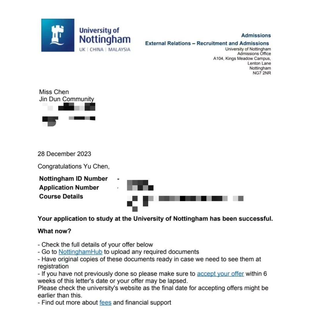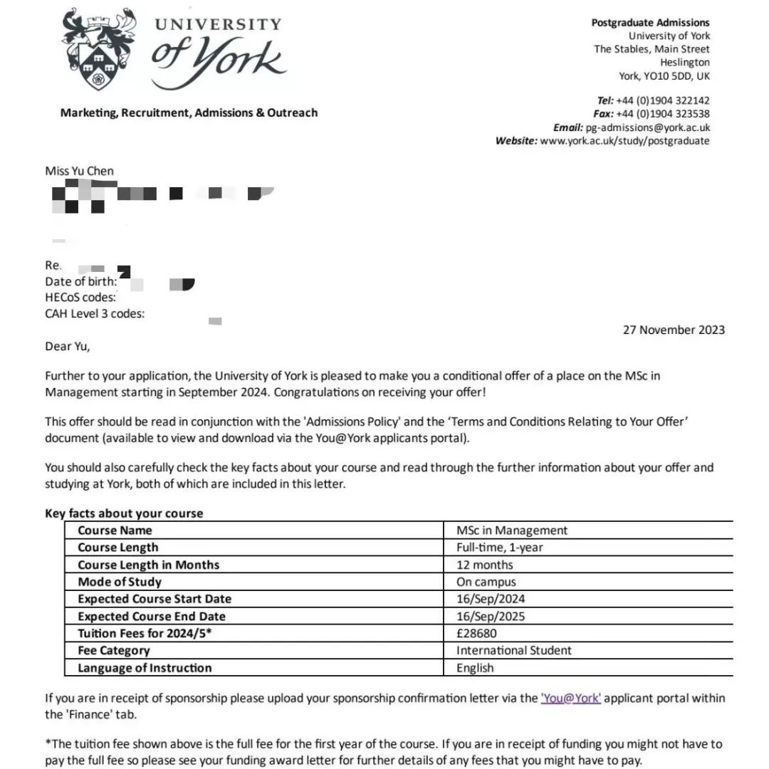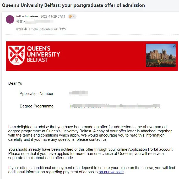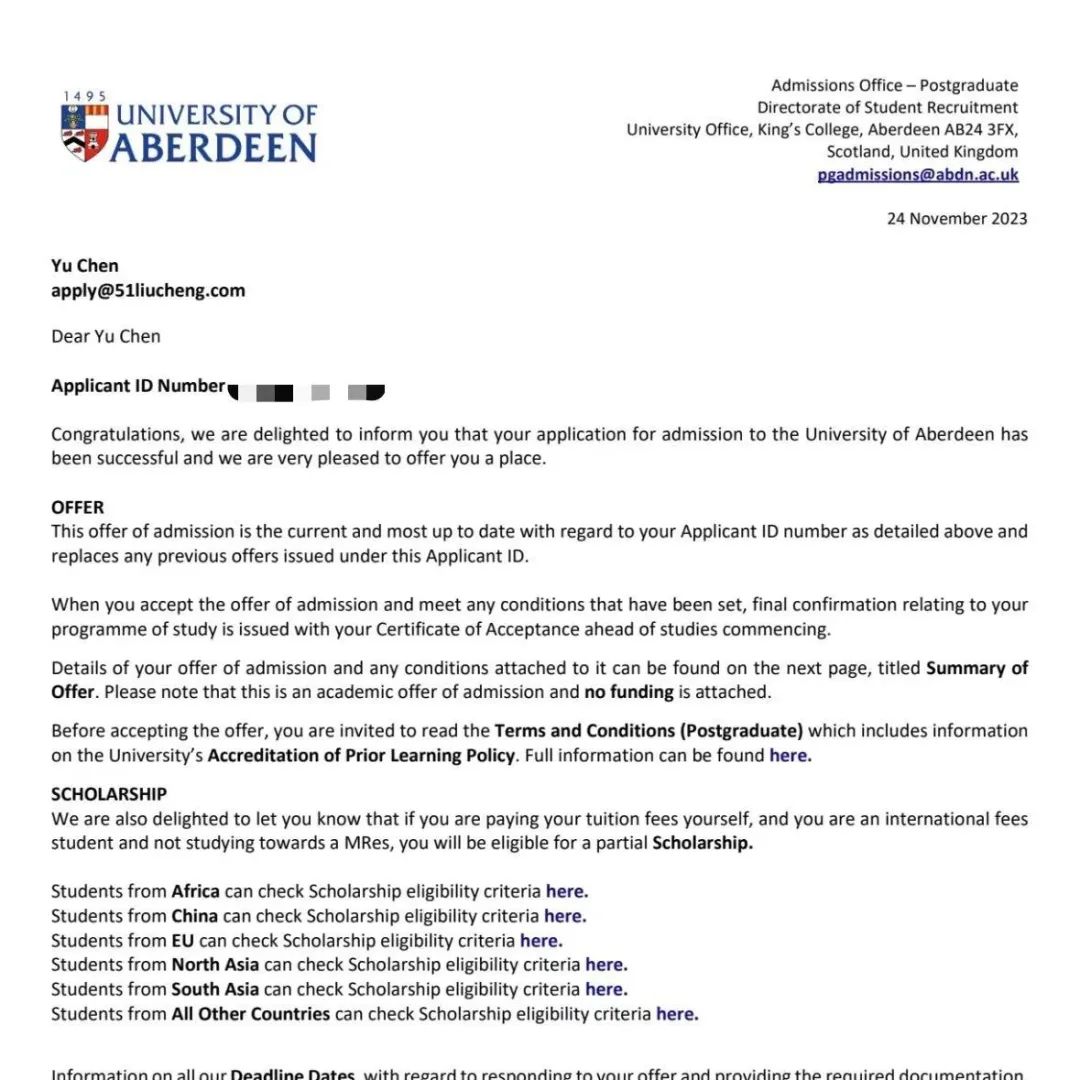 现已收到诺丁汉大学、贝尔法斯特女王大学、阿伯丁大学、约克大学offer