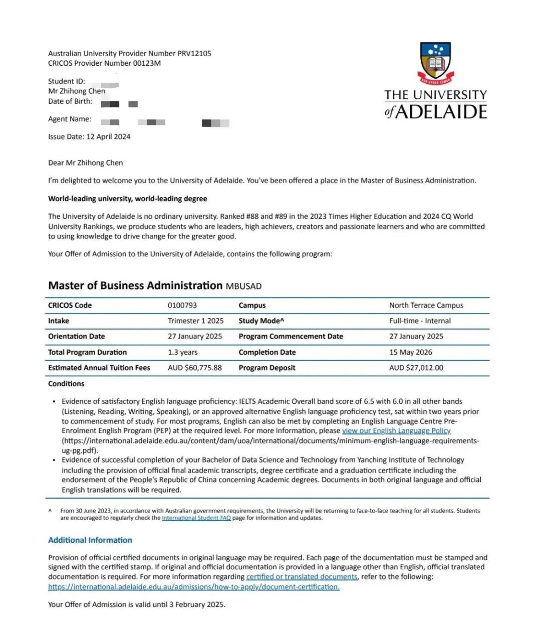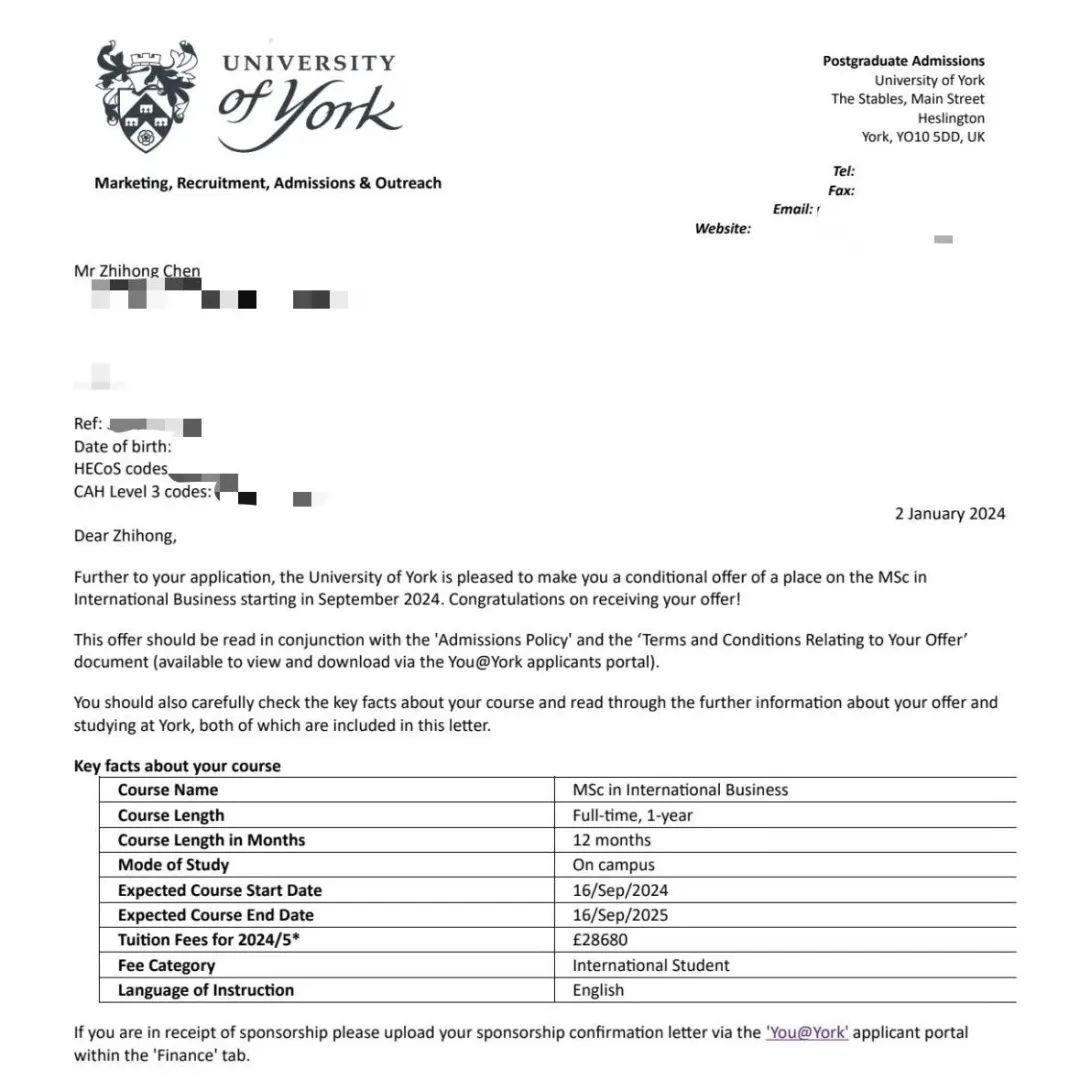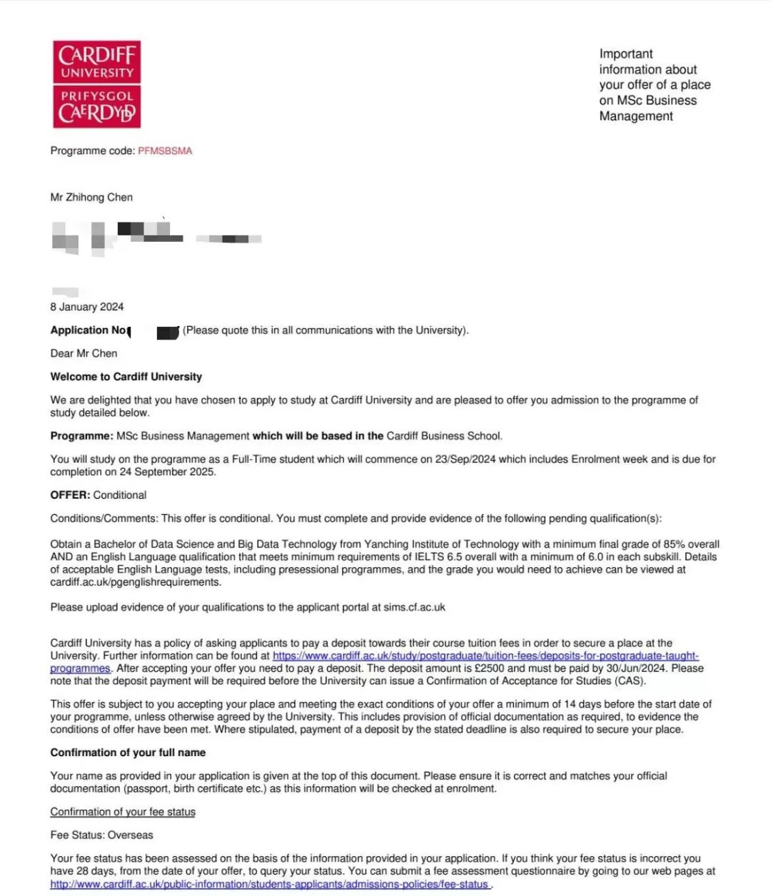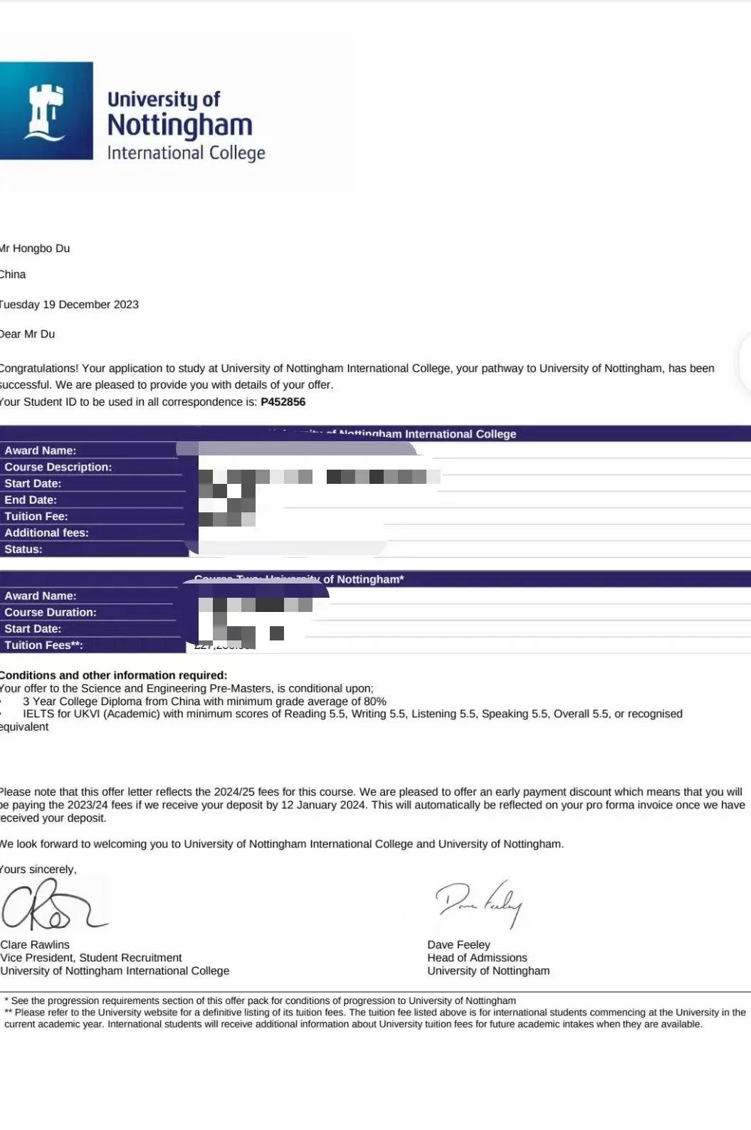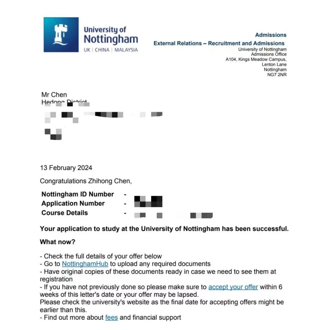现已收到阿德莱德大学、诺丁汉大学、卡迪夫大学、约克大学offer