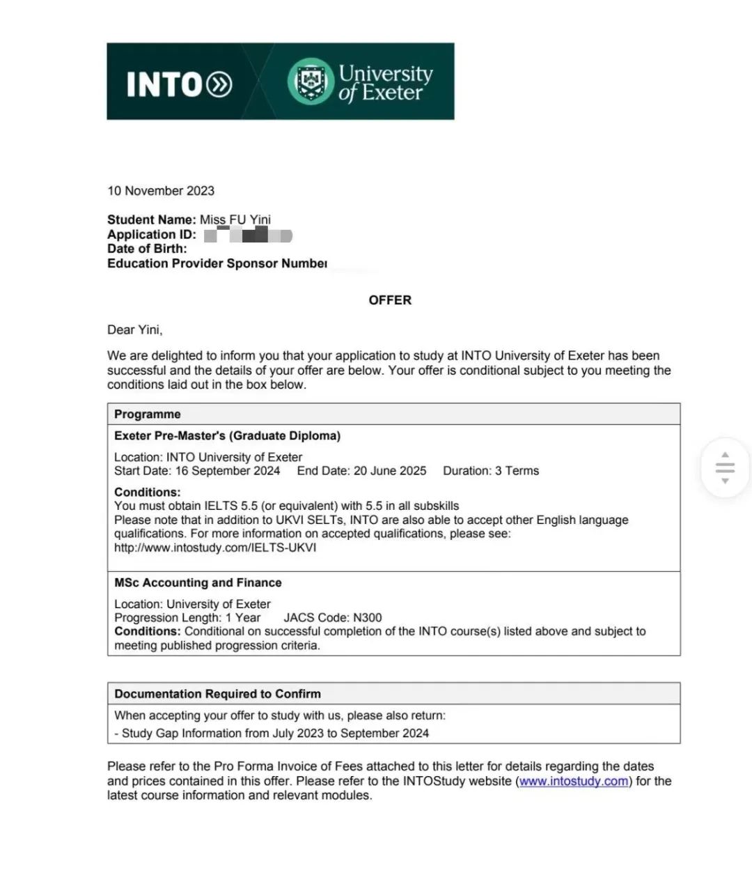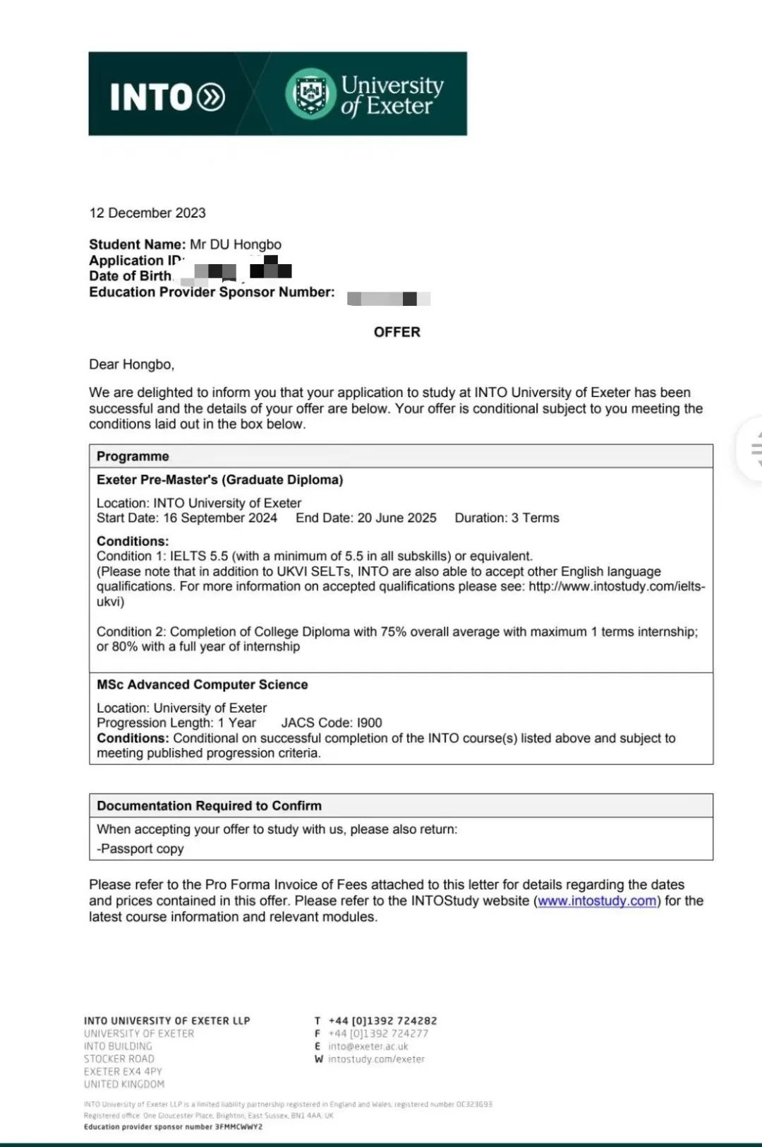 现已收到诺丁汉大学、伦敦大学城市学院、埃克塞特大学offer
