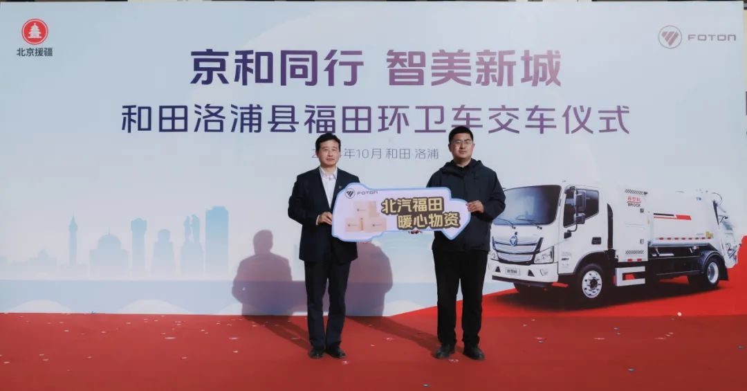 北京市援疆和田指挥部洛浦县工作队领队、洛浦县委副书记郝文佳表示,28年来,北京援疆干部、社会各界把智慧和汗水挥洒在和田这片绿洲,谱写了大爱无疆的感人篇章。在指挥部党委的领导和指导下,北汽福田党委与洛浦县工作队党支部于去年结为党建共建单位,一年多来,我们坚持党建共建、资源共享、优势互补、发展共谋,在多领域开展合作交流,取得了丰硕成果。今天的交车仪式和捐赠活动,正是这一成果的生动诠释。未来,洛浦县工作队党支部将与北汽福田党委继续加强交流合作,与和田、与洛浦携手同行,为打造智美和田、智美洛浦丝路新城不断贡献智慧和力量。