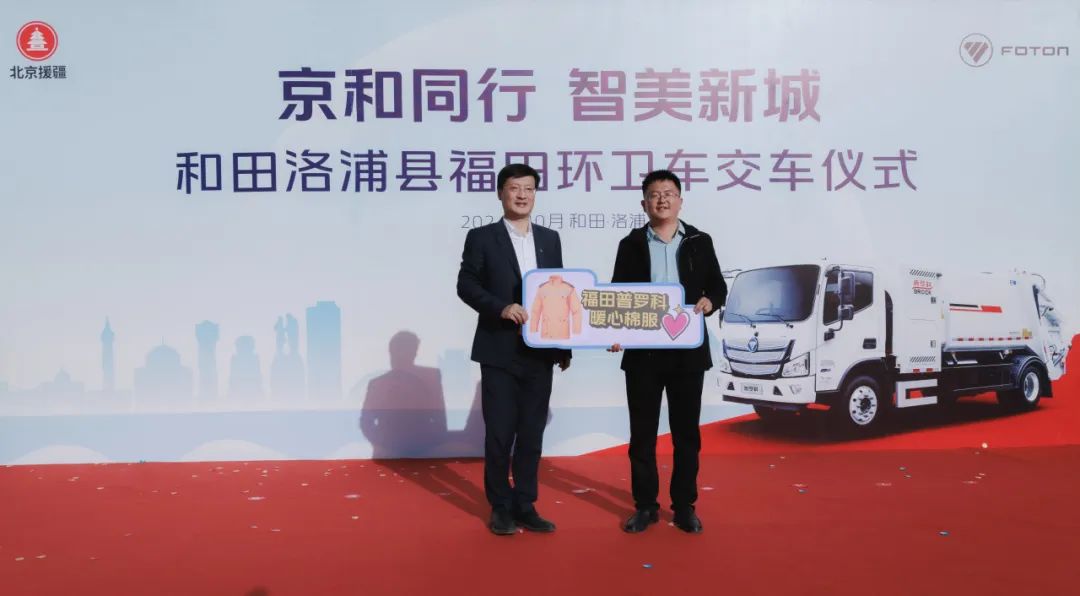 活动现场,北汽福田党委副书记蔡恩禹代表北汽福田向洛浦县文旅局捐赠暖心物资,旨在助力当地文化产业的发展,为洛浦县的文化事业注入新的活力。夏历酷暑,冬战严寒,环卫工人始终坚守一线。福田普罗科事业部党委书记、总裁潘林波向洛浦县住建局捐赠冬季环卫棉服,将福利与关怀再一次落到实处,这一举措不仅体现了企业对环卫工人的关怀,更彰显了国家援疆战略下企业对民生问题的深切关注。