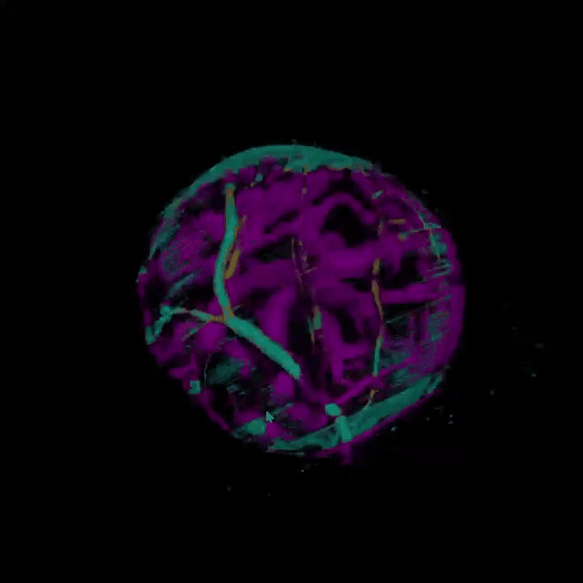 脉络膜黑色素瘤是成年人最常见的眼内恶性肿瘤,根据瘤内黑色素含量不同,可分为黑色素型、无色素型、混合型和出血型,其中无色素型仅占15%,与典型病变有所不同,由于缺少色素, MRI的“顺磁现象”不如典型脉络膜黑色素瘤明显。该患者肿瘤瘤体巨大,但FFA早期渗漏不明显,结合其他辅助检查,可以与脉络膜血管瘤、脉络膜神经鞘瘤和转移癌相鉴别。本病例采用图湃40万速超广角全域扫频OCTA北溟·鲲,可清晰观察到肿瘤表面和瘤体内部粗大的血管血流信号,并在设备上直接获得3D血管成像,更加直观立体地展示了血管生长走行特点,这在深入探索疾病特点、监测肿瘤及周围血管变化,辅助诊断和治疗方面具有重要意义。