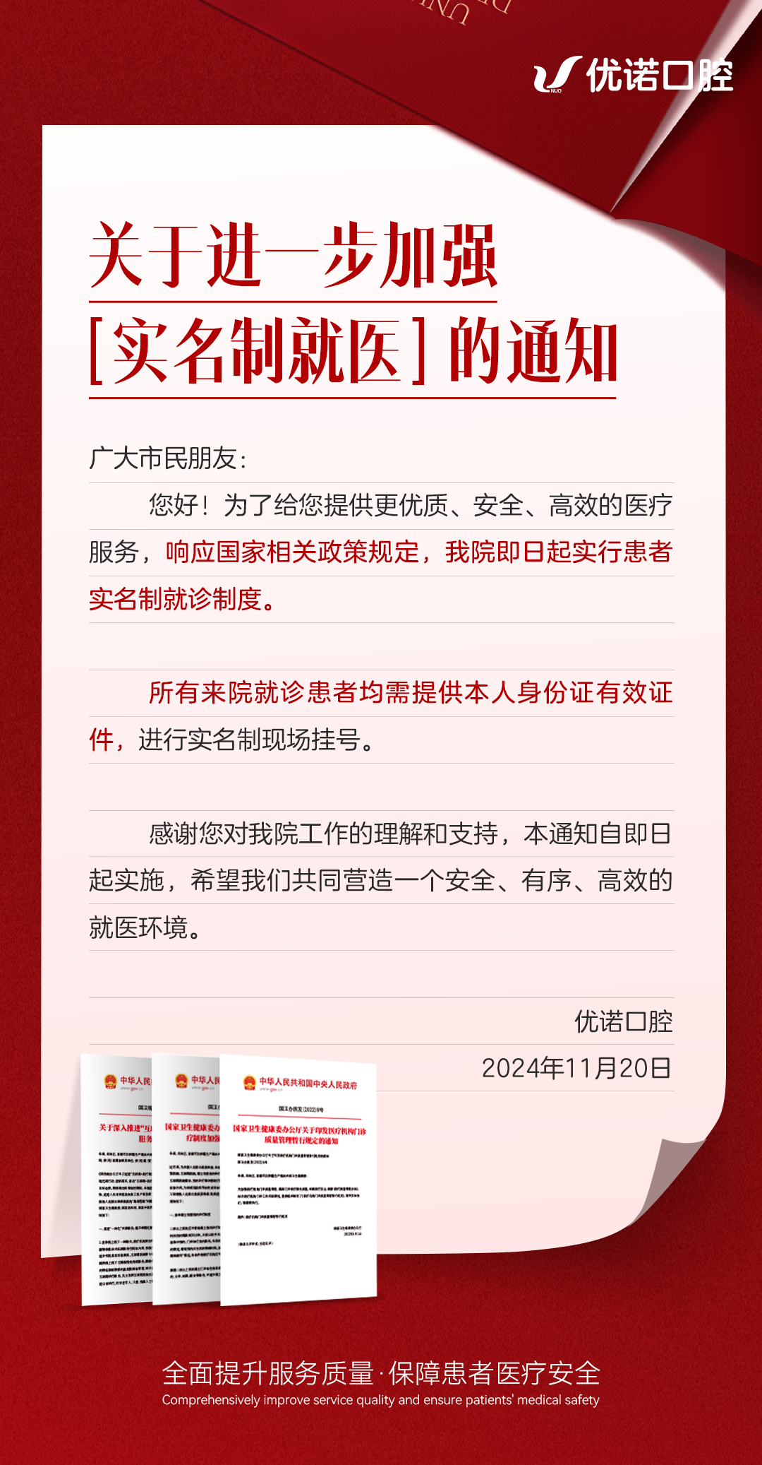 优诺口腔:关于进一步加强《实名制就医》的通知