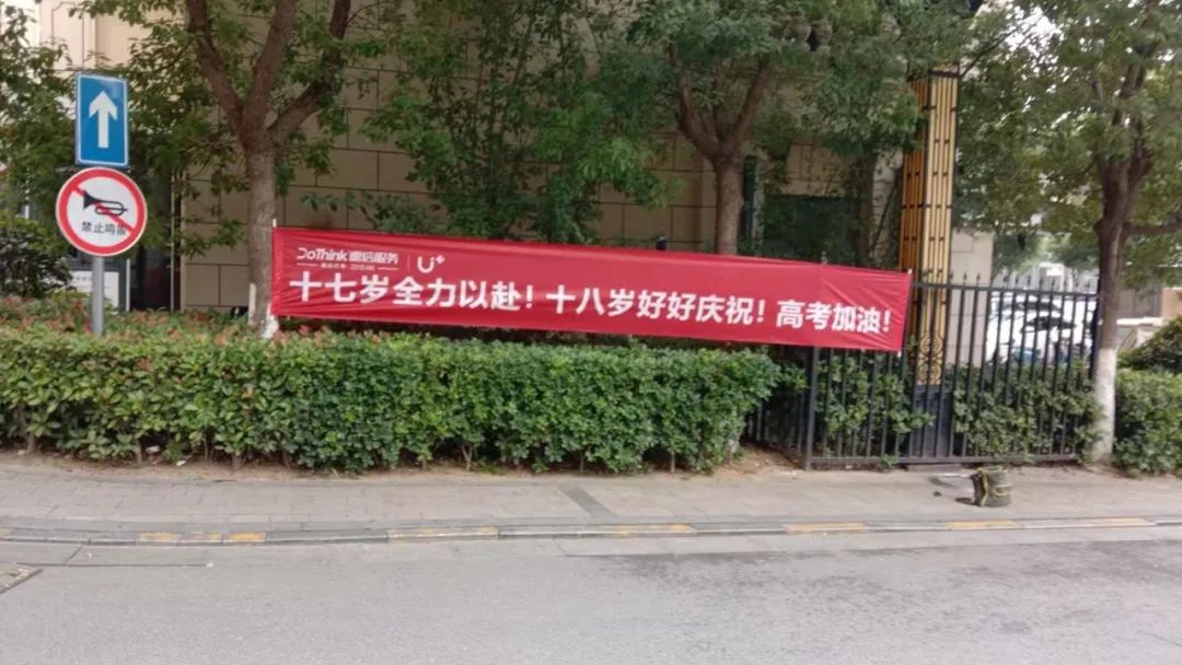 从高考前一周开始,各式各样的花式加油横幅便陆陆续续出现在一座座知己园区中。